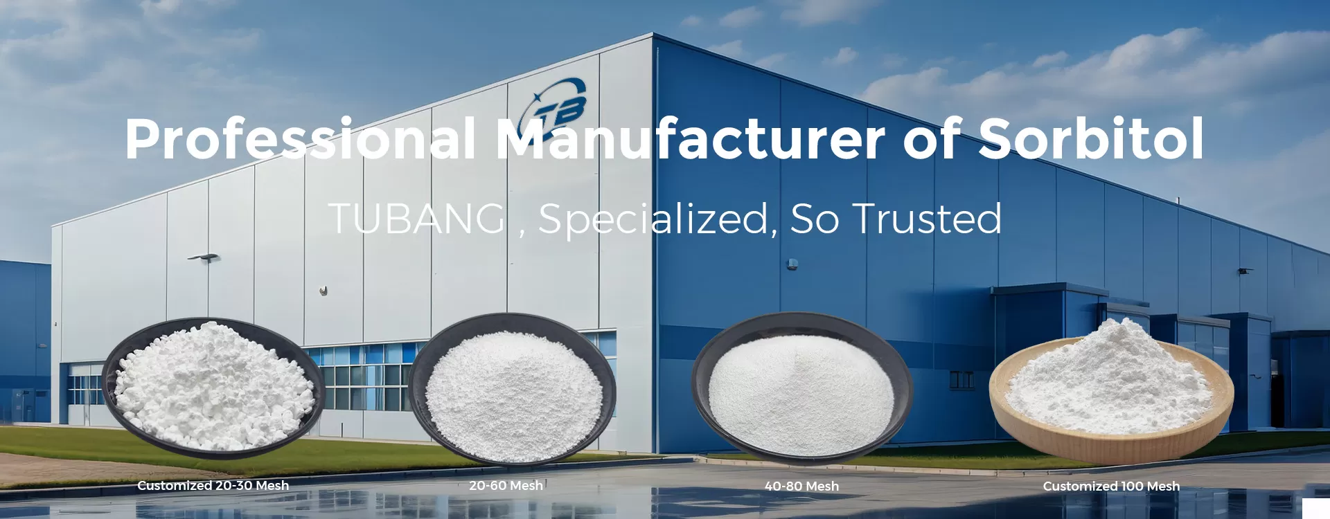 TUBANG is a professional manufacturer of Sorbitol, we have Sorbitol Crystal in 20-60 Mesh, 40-80 Mesh, Sorbitol Liquid 70% solution, customized specification are welcomed.